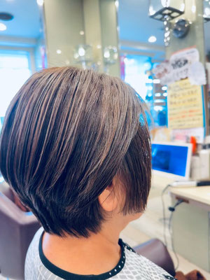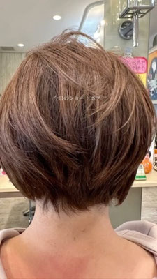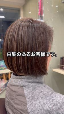 髪に軽やかさを持たせるため、白髪をカバーしながらも柔らかい印象に仕上がります。